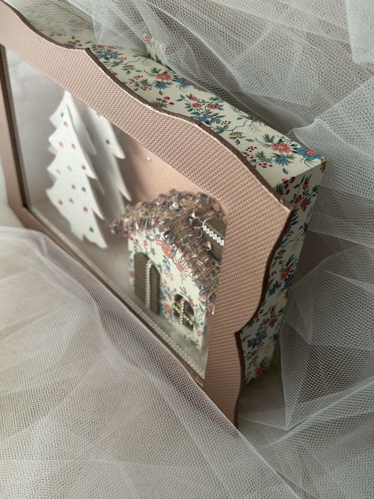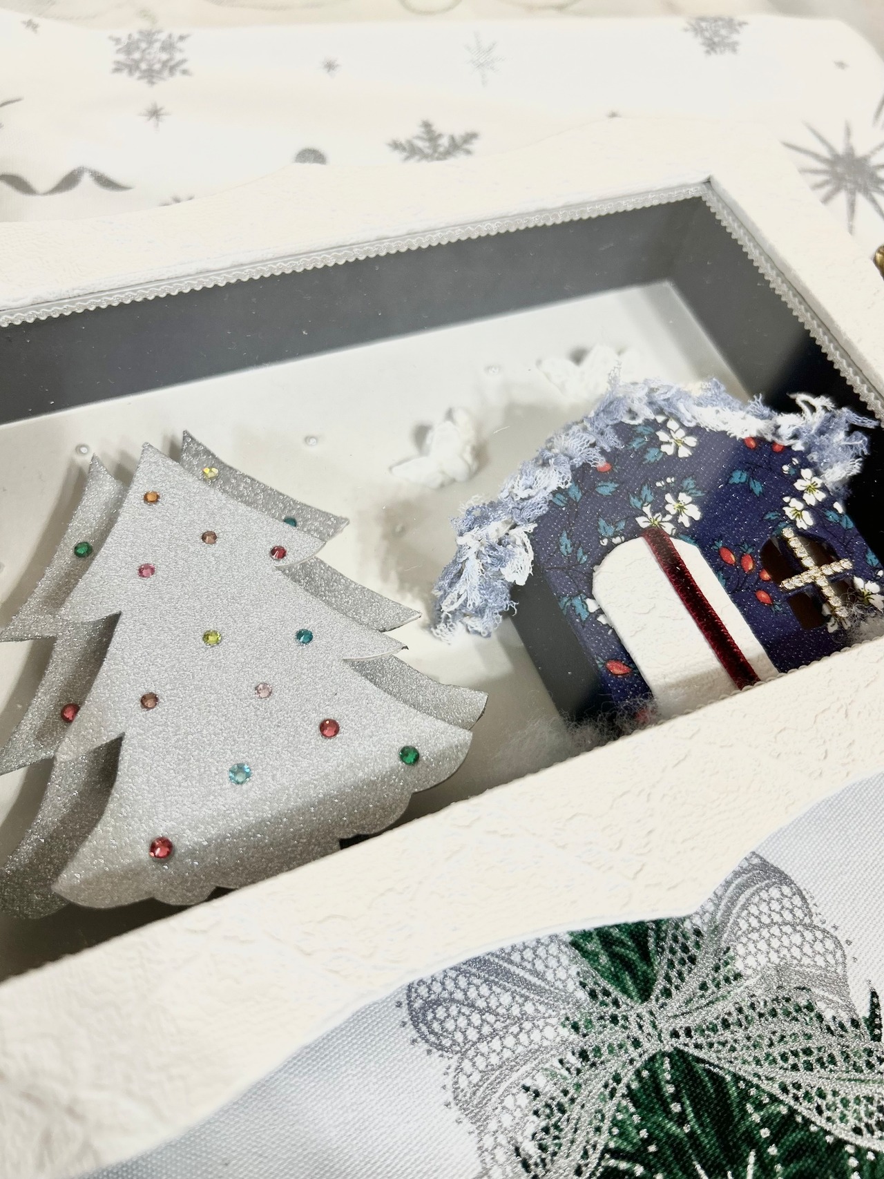 この作品は、美しい額縁の中にクリスマスの夢を詰め込んだ、特別なオブジェです。